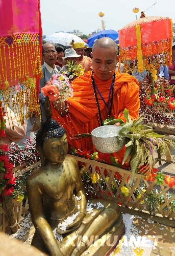 僧人在举行泼水节前的浴佛仪式(资料图片来源于新华网)