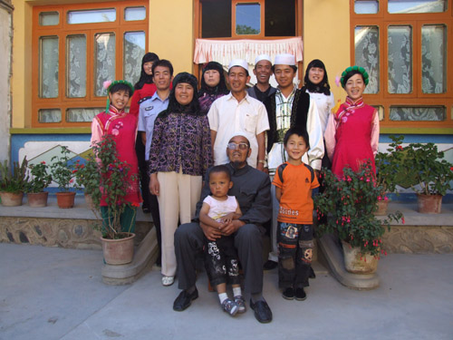 全家福:2006年6月29日,甘肃省临夏回族自治州东乡族自治县马有德老人(前左)一家,在自家盖的小院里合影。东乡族主要聚居在甘肃省临夏回族自治州的东乡族自治县,少数散居在青海省、宁夏回族自治区和新疆维吾尔自治区。东乡族信仰伊斯兰教,衣食住行及风俗习惯与回族基本相似。