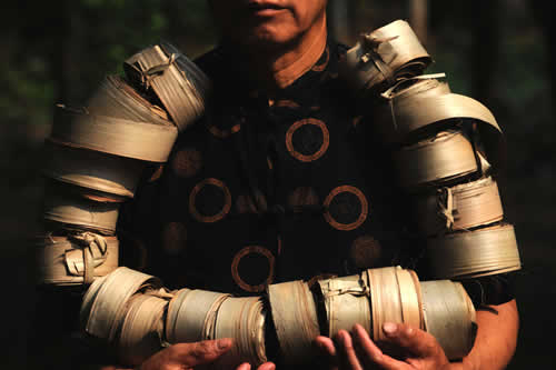 傣族园民间艺人在展示晒干的贝叶