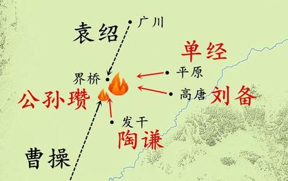 公元192年,袁绍一派跟公孙瓒一派,由于袁术的干系在冀州界桥产生辩论:《三国志·武帝纪》:袁术与绍有隙,术求援於公孙瓒,瓒使刘备屯高唐,单经屯平原,陶谦屯发干,以逼绍。太祖与绍会击,皆破之。从舆图上能够看出,曹操和陶谦两人同处疆场以南。固然史乘没有曹操、陶谦详细的辩论纪录,但只有两边向界桥兴兵,就有极大大概在半路相遇,即便没有干脆比武,到了疆场也以免不了相互对攻。