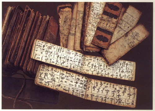 东巴经最早用原始旬形文字书写,后出现东巴文和格巴文混写以及用格巴文书写的东巴经书。