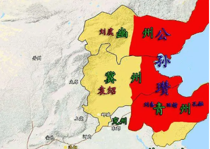 然而,随着公孙瓒势力越来越大,其与河北其他势力之间的矛盾也越来越突出,其中主要有三股势力,其一是公孙瓒的顶头上司幽州牧刘虞,其二是幽州以南的冀州牧韩馥,其三便是韩馥属下的渤海太守袁绍。