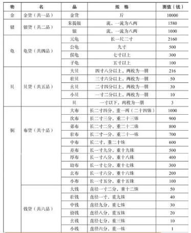 第一次失败的货币改革,引发的金融灾难形成了蝴蝶效应,王莽不得不继续改革,这次王莽推出了五物六名二十八品的货币体系。那复杂到现代人可能都无法背齐的换算法则,让古人更是无法适应,于是五铢钱流通还在继续,紧接着王莽规定携带五铢钱者流放,这逼得人民回到了以物易物的经济环境中。
