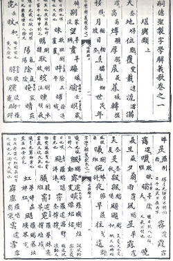 一是假借喃字。这是单纯借汉字声符表意的喃字,其方法又叫借汉字法。这类喃字较多,约占喃字总数的三分之二。这类喃字的特点是借助汉字声符读京族语音,并通过京族语音反映特定的意义。如,古时候京族人称父亲,音为“布”;称母亲,音为“盖”。如果借汉字“布盖”之音表京族父母之意,那么“布盖”就是父母的意思。自然“布”“盖”也就是喃字。有时甚至整句话都是借音表意。如,借汉字“胡公决计承机”六个声符,表的是“梅骨格雪精神”的意思。有的假借喃字另外加符,也有辅助表意的功效。如加“口”字旁表示与嘴有关。