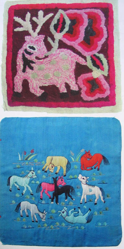 这其中有一部分枕头顶刺绣作品所表现的内容是萨满教所崇尚的图腾崇拜或萨满祭祀的场面,具有浓郁的萨满文化气息。