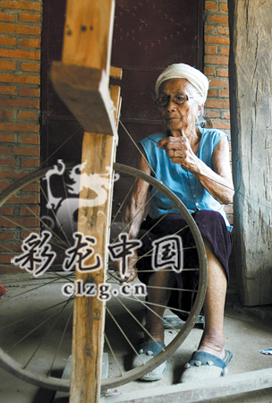 百岁老人至今仍坐在纺车前做着简单的缠线工序。记者曲鸣飞/摄