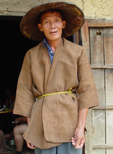 身穿红藤黎锦的黎族老人 海南特区报 李志良 摄