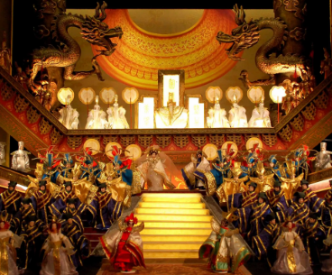 武帝修缮后的未央宫,以香木为栋椽,以杏木作梁柱,门扉上有金色的花纹,门面有玉饰,椽端上以壁为饰,窗为青色,殿阶为红色,殿前左为斜坡,以乘车上,右为台阶,供人拾级。