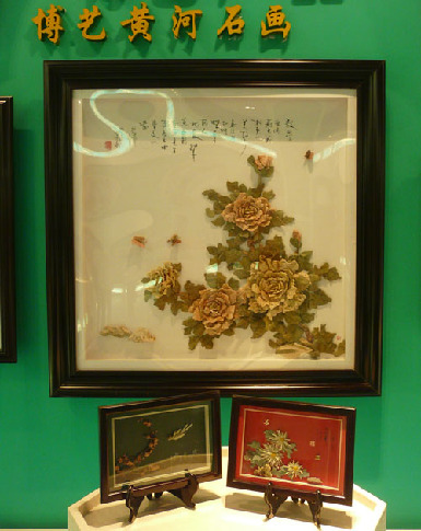 “黄河石艺”用天然石材制成,这些画品皆具有天然的立体感,放在一起,则会产生“横看成岭侧成峰”的效果。