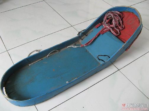 摇篮头部分周帮中部架弧形柳条,在上罩纱布,防止蚊蝇叮落到孩子的脸上,两边挂有三到五个串有十来个玉珠、小贝壳、铜钱的皮条,在底部横挂串有二十多个鹿腿小骨或野鸡腿骨的响坠儿,称为“卡撇勒金库”。随着摇篮的拉动,响坠儿有节奏地敲打底板,声声清脆,催促孩子进入甜蜜的梦乡。使用摇篮时,把它用鹿颈皮带挂在屋内中央的横梁上。拉动摇篮尾部的皮带,摇篮便像一叶小舟,在空中来回荡漾。
