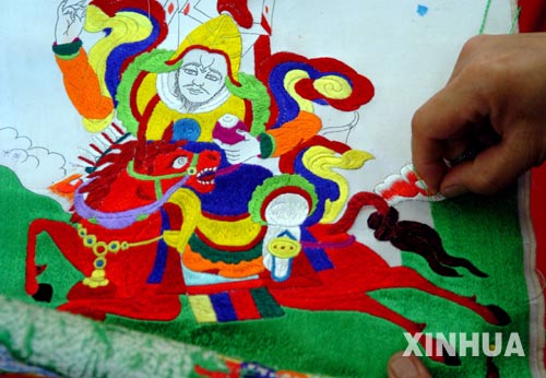 除服饰外,土族的刺绣工艺还应用于佛殿经堂中的各种佛像、经幡、柱毯、壁毯等的制作。使传统的民族民间手工艺与藏传佛教艺术有机地融为一体。