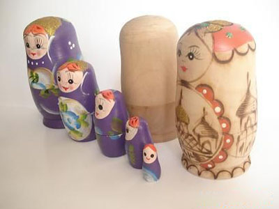 套娃是俄罗斯著名的传统工艺品和旅游纪念品,打开娃娃的肚子,会发现可以一层一层的剥下去。套娃不仅只数多,而且每套娃娃都大致不同,或许表情,或许颜色,还有每套娃娃的肚子上都描绘了迥异的故事、景物和文化。大娃里面套小娃,最多可套20个左右,最小的一个只有几厘米。但人物形象分明,同样的憨厚可爱。