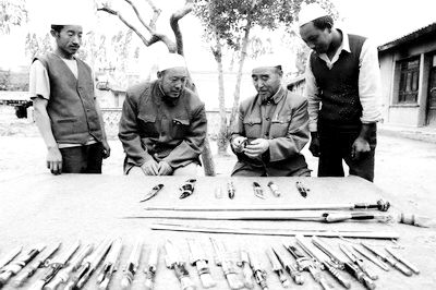 就这样,保安人依靠冶铁技术和保安腰刀,在积石关口进进出出,来回奔波,发展了自己的商业经济,使昔日人口稀少、杂草丛生的大河家出现了繁荣景象。早在1957年,当时的地方政府就把分散的制刀工匠组织起来,在大河家建立了刀具厂,并开始成批生产保安腰刀。改革开放后,大河家的商贸流通日益活跃,在政府“建一处市场,带一批产业,富一片地方”的思想指导下,大河家终于变成了甘、青两省三个自治县(积石山、民和、循化)的物资交流中心。