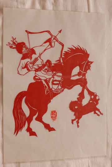 阿东的剪纸:鄂伦春族打猎时骑射的场景(图片来源于新浪体育)