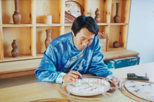 如今的赫哲人早已进入了现代文明,他们喜欢的桦树皮器具渐渐退出了现代人的生活,现在能够掌握桦树皮制作技艺的人更是寥寥无几,这门古老的技艺正面临着失传。赫哲艺人付占祥早在20多年前就致力于桦树皮制作工艺的研究与开发,他在民族传统制作技艺的基础上不断的改进,挖掘出了别具一格的桦树皮工艺品。