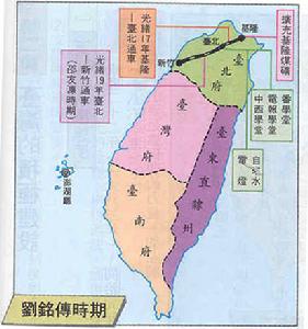 刘铭传在他任台湾巡抚的六年(1885-1890)中,对台湾的国防、行政、财政、生产、交通、教育,进行了广泛而大胆的改革,全面推进台湾的近代化进程,使台湾的面貌焕然一新。刘铭传认为台湾是东南7省的门户,需要认真加强防务。他确定了台湾防务建设的原则是:以澎湖为前沿,台北为重点。依靠近代化的武器装备和工事。建立独立防御体系,为此,他先后做了四件大事:兴办军器局和军械所,兴筑新式炮台,加强澎湖防务和整顿台湾军制。在加强海防的同时,刘铭传还将台湾的陆营裁汰,整编成35营,全部改用洋枪,仿照欧洲方式进行训练,严格考核制度。台湾的团练也改为常设,设团练总局于台北,各府、县、厅设分局,各乡设团,使之平时维持治安,战时佐助官军御敌。此外,刘铭传还在台湾创办全国最早的、独立的邮政局,在台湾修建最早的一条实际营运的铁路,在台湾提出中国最早的创办经济特区计划——基隆煤矿承办章程。以及架设电线,发展工商、种植送输诸业,推动了经济的发展,也为防务奠定了一定的经济基础。他在台湾进行的革新并非囿于台湾之一岛,而是有着希冀“以一岛基国之富强”,以台湾“一隅之设施为全国之范”,推动全国的革新与富强远大眼光和胸怀。刘铭传在台新政是清朝统治台湾200年中最重要、也是最后的一次革新。连战祖父连横的《台湾通史》评价刘铭传“倡淮旅,练洋操,议铁路,建台省,实创中国未有之奇”,“溯其功业,足与台湾不朽”。但这些革新措施却遭到朝廷、社会保守人士的共同反对。迫于内外压力,刘铭传不得不在1891年告病辞归。此时刘铭传五十五岁,正值壮盛之年。