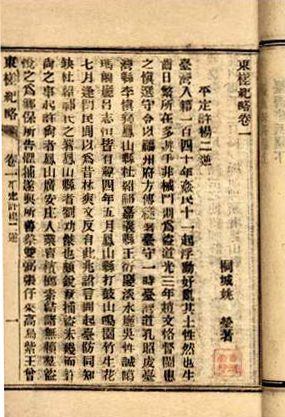 与《康輶纪行》可以媲美的是他的《东槎纪略》。该书是研究台湾历史地理的早期著作之一,作于道光九年(1829)因“龙溪别案”被革职以后。嘉庆二十四年(1819年)春,调任台湾知县;道光元年(1821)任噶玛兰(今台湾宜兰地区)通判。当时的噶玛兰还是蛮荒之地,他兴利除弊、鼓励民垦,改筑仰山书院,大力促进汉族与当地土著和睦相处,对开发噶玛兰作了积极贡献,因而“深得士民心”,在台五年“所至士民好之”(连横《台湾通史》)。道光三年,因当年任龙溪知县时旧案,受害革职。他在乡居之中写的《东槎纪略》“自序”中云﹕“余以羁忧,栖迟海外。目睹往来论议区划之详实,能明切事情、洞中机要;苟无记之,惧后来老习焉不得其所以然。……乃采其耍略于篇,附及平素论著涉台政者,而以陈周全之事终焉”。可见他在困厄之中仍不忘忧国,为清廷、为后人留下治台的施政举措和第一手资料。