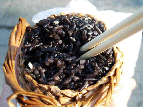 为农历三月三食用。乌米饭的制法,是用山上的一种野生植物乌稔树(杜鹃科,乌饭树)的叶子,放到石臼舂碎后,贮到布袋里,连袋放到铁镬里,加适量的水熬汤,让它释出紫黑色的汤汁来,而后去掉袋里叶渣,将精选的糯米泡进汤进汁里,几小时后,捞起放到木甑里蒸熟即成。乌米饭色泽乌黑发蓝,香软可口。由于乌稔能起开脾、防腐作用。故将乌米饭放在通风阴凉处,数日不腐。食用乌米饭有准备春耕,迎接丰收的象征意义。