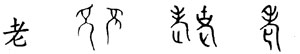 老字的各种写法,自左起分别为甲骨文,金文,篆书