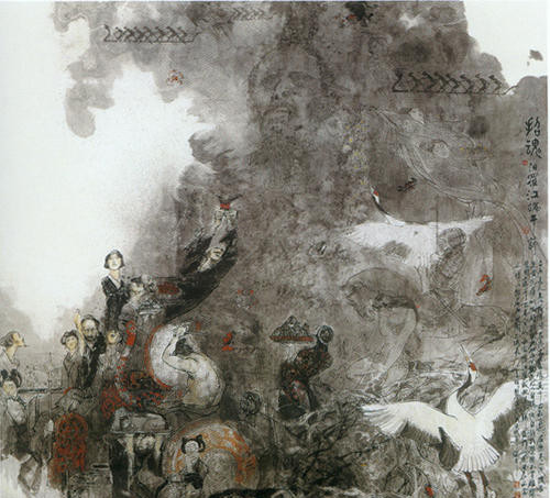 作为《招魂》主干的是巫阳的招辞。招辞的第一部分写东、南、西、北、天上、地下的可畏可怖。这里取用了许多神话材料,写得诡异莫测。神话的瑰奇本是具有现实基础的,联系这种基础,可知想象的合理性;神话又是经过幻想加工改造的,赋予了令人眩目的奇幻色彩,更能激发起人们的审美兴味。
