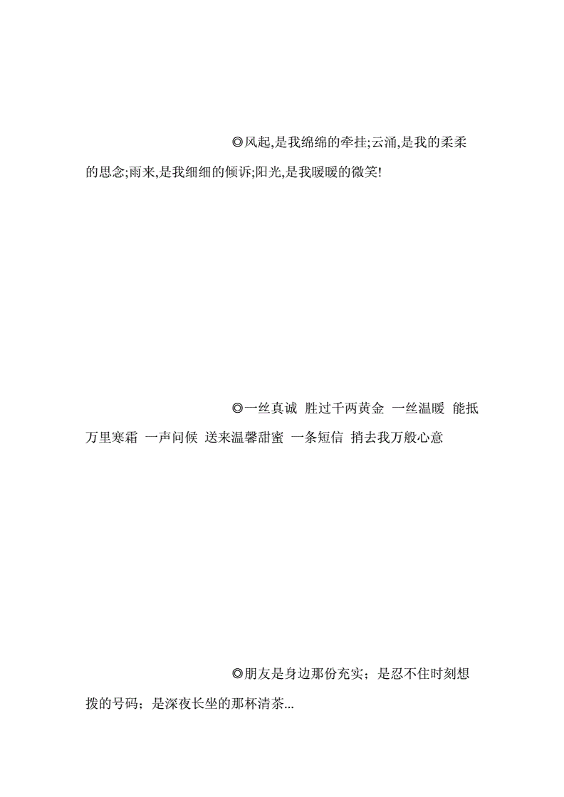 1朋友本不该有那么重要,朋友又的确那么重要生命里或许可以没有感动没有胜利没有其他的 2人生固然短暂,人海固然茫茫,但在短暂的生命和茫茫的人海中,你我能相聚,并成为知己,那是 3你的身影是帆,我的目光是河流,多少次想挽留你,终于不能够我知道人世间难得的是友情,但更 4美丽的梦和美丽的诗一样,都是可遇而不可求的我真喜欢那样的梦,明明知道你已为我跋涉千里 5真正的友谊是一种缓慢生长的植物,必须经历并顶得住逆境的冲击,才无愧友谊这个称号 查看更多内容。简短的友情留言句子合集大全 朋友就像片片拼图,结合后构成一幅美丽的图画,如果不见 了一片,就永远都不会完整,你就是我不想遗失的那重要一片 下面是小编整理。