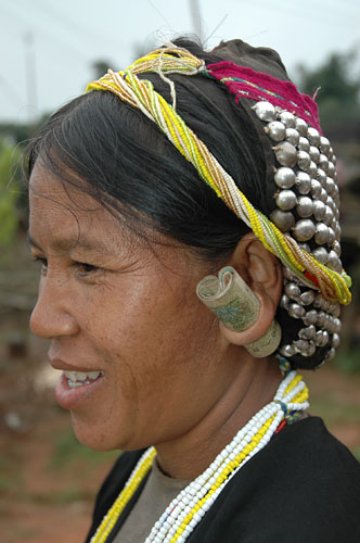 佤族妇女的耳环非常奇特,大得出奇夸张,令人难以置信。