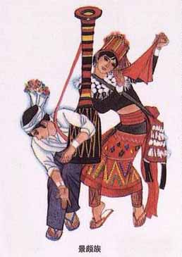 景颇族人平时的装束很普通,男子与汉族人的穿着没有什么区别,妇女一般穿自织粗布做成的长衣统裙,颜色多为深色。