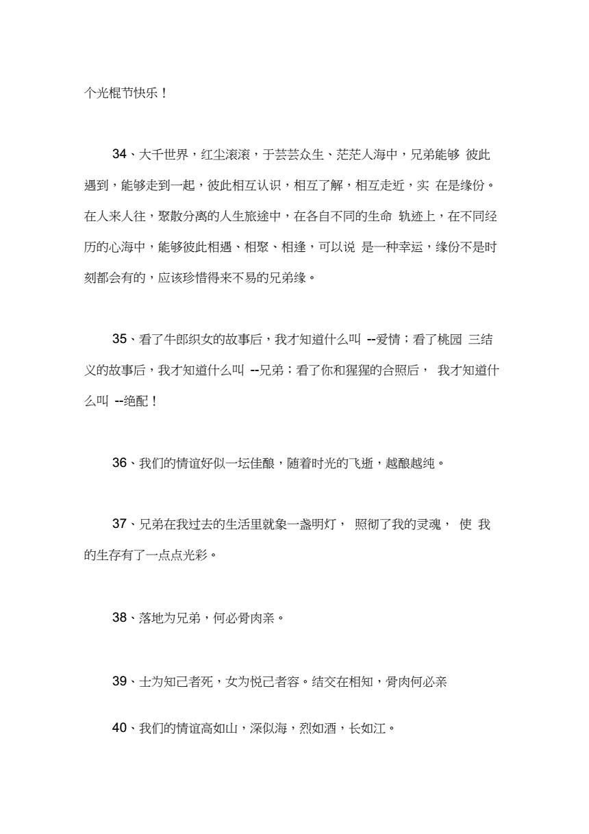 珍惜兄弟情义的句子 致兄弟的一段话霸气70句 一他黑他丑他穷他矮他屌丝他是我兄弟 二把心儿抛上云端,让思念吻着多情的天际,于是随风飘来一片蔚蓝,那是我所渴望的希。35好兄弟不分穷富,好朋友不分男女,好关系不算时间 36他是不完美,但他是我兄弟 今天这组关于关于兄弟情义的霸气说说文案就分享到这里了,偶尔今天矫情一次,。1锦上添花是哥们,雪中送炭是朋友,有福同享有难同当是兄弟,心有灵犀一点通的是知己,一生知己不多,你就是我的知己 2亲爱的我愿就这样和你们一起傻下去。