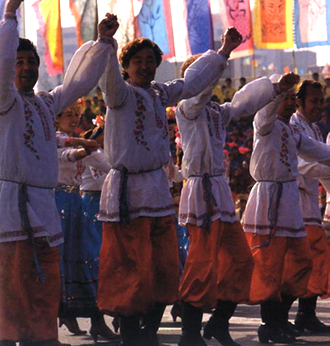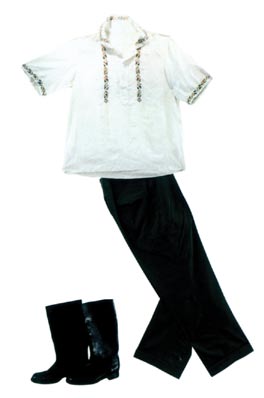 喜庆节日,小伙子爱穿彩色衬衣。妇女们则喜欢穿绸制的绣花衬衣。