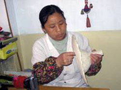 这是红缨帽的制作过程:先用芨芨草编帽胎,然后进行装饰加工。