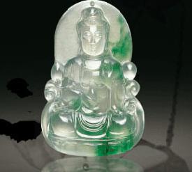 在人们的心目中,观音是大慈大悲,救苦救难普度众生的神。《法华经普门品》说,凡有众生,若在苦恼之时,只要专心虔诚地念观音圣号,观音菩萨就能听到每一位众生的印声而前来予以救济,所以翡翠观音寓意逢凶化吉,消灾解难。