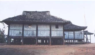 德昂族的家庭民居多为竹木结构、歇山式草顶的干栏建筑,平面有长方形、半圆形、弧形等多种风格。干栏式民居分上下两层,上层住人、下层作畜厩,有主副两座楼梯。歇山式草顶为圆弧形的民居,当地称“毡帽形”,风格粗犷。民居构架为穿斗式木梁柱,楼面、隔间均用竹片或木板铺设。在德宏等地是一家一院,主房楼上住人、煮食、贮藏粮食,楼下关牲口,附房用作堆放柴草和安装舂米用的脚碓。镇康地区若干小家庭同住一幢房子,房内中间有宽敞的走道,两旁为各小家庭住室,间壁而居,各有火塘,所以竹楼较大,有的占地近400平方米。解放以后,这种竹楼建筑已有改变,现在部分德昂族的住宅与附近汉族的平房一样。德昂族信仰佛教,有些村庄里建有寺庙,每逢佛事活动人们就来到寺庙里,举行隆重的仪式。