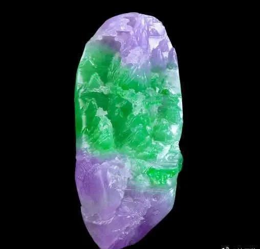 27、三彩:同时出现有绿色和紫色、或者绿色和褐红(黄)色的翡翠。