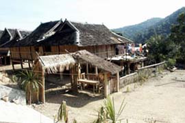 另一种是同一父系氏族的数代人居住在一幢大竹楼里.也有一个最年长的男性家长.但各个小家庭已有自己的家庭经济.有共耕的习惯.但已按小家庭独立消费。如20世纪的40年代亚诺还余存有10余幢大套房。其中最大的一幢长房是木腊标家.房内共有28个小家庭.140多人。各个小家庭不仅有自己单独的房间.而且还有各自的火塘.以小家庭为单位从事生产和消费。大家庭只是在过节和重要农事季节以及婚丧嫁娶之时举行传统的集体活动。从居住形式来看是原始的共居习俗.但从生产生活的消费来看.已逐步从集体共有制向家庭私有制发展了。