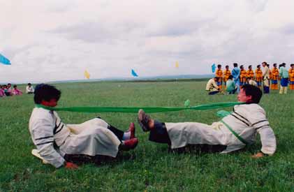 扳棍和颈力赛是达斡尔族传统的有民族特色的体育活动,也是简便易行、男女老幼皆宜的 体育项目,在任何场合下,均可随时进行。