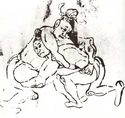 《续高僧传》上也记载了类似的故事:隋代有一个叫法通的和尚精通相扑。当时“有西番贡一人云大壮,在北门试相扑无敌者”。这件事使隋高祖杨坚很为恼火。他说,难道“大隋国无健者”?有人向隋高祖推荐法通。隋高祖马上派人“召通来,令相扑”。结果,法通赢了大壮,“举朝称庆”。这件事反映了当时民族间相扑技艺的交流,也表现了代表民族的体育比赛,是如何激动着民族情绪。