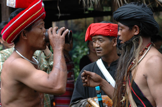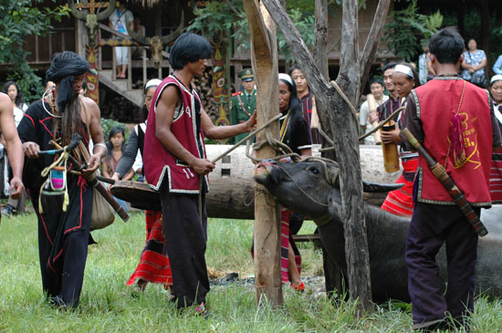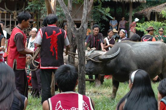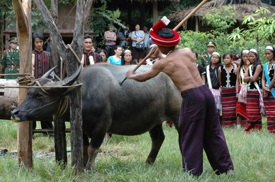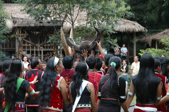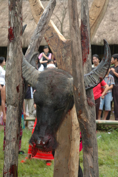 镖牛结束后,用牛头祭木鼓和司岗里。 新华社记者 屈明光 摄影报道