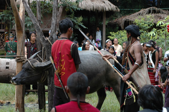 在佤族聚居地区,每个佤寨都建有一个用于集会祭祀、载歌载舞的广场,镖牛活动就在佤族寨子的广场举行。