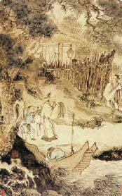 明代周臣所绘《柴门送客图》