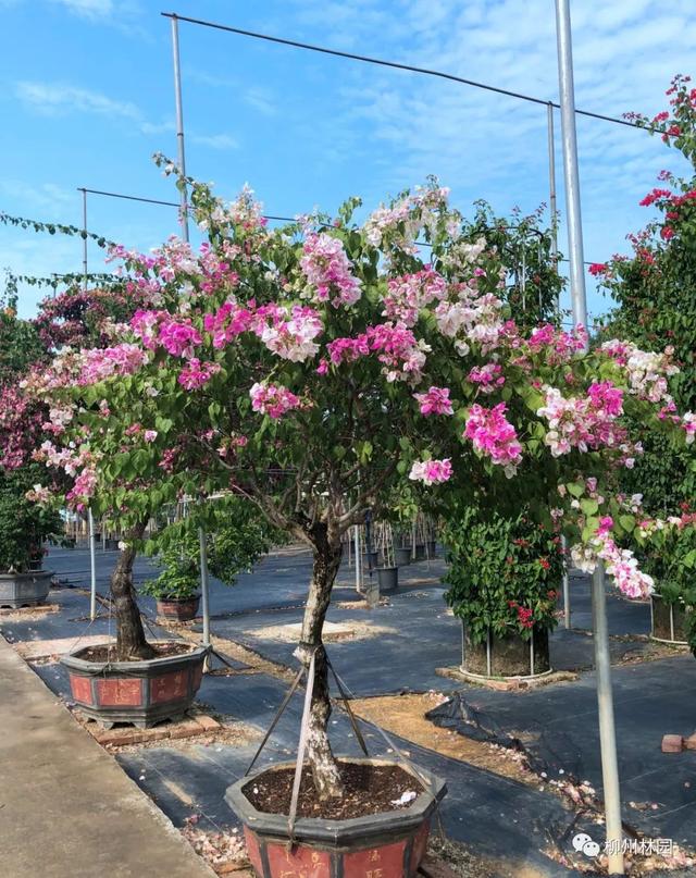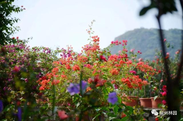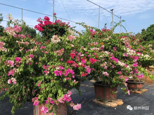不甘示弱的还有拱形、柱形、心形、孔雀形等三角花各色造型,让人目不暇接,流连忘返。