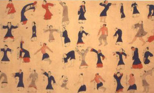 导引图保健养生被称为中华武术之魂,也可以叫做中国整个古代体育的基础。保健养生在古代主要分这么三大部分,一个是导引术,一个是行气术,还有一个按摩术。