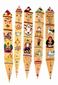 这样,自然也就形成了因各位东巴出自不同的师门,对同一段经文的吟诵与释义就不尽相同的情况。东巴教深受到藏族苯教以及藏传佛教的影响。比如“东巴”一词的古称原为“钵波”,这同苯教经师的称谓“苯波”十分相似;东巴教传说中的创教者名叫“丁巴什罗”,实际上与苯教的祖师“敦巴辛饶”为同一人。另外,东巴经典中所记载的东巴教第一位神名叫“古孜盘苯波”,其意即“藏族盘经师”;东巴教中的“鹏”、“龙”、“狮”等护法神,也多来自苯教;其头上所戴的“五佛冠”,也同苯教经师所戴的一样。