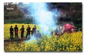 土家族人订婚,俗叫“认亲”,又叫“放爆竹”。女方的父母许亲后,就商量“认亲”的事。“认亲”有大小之分。