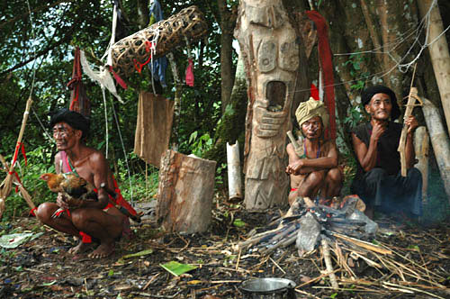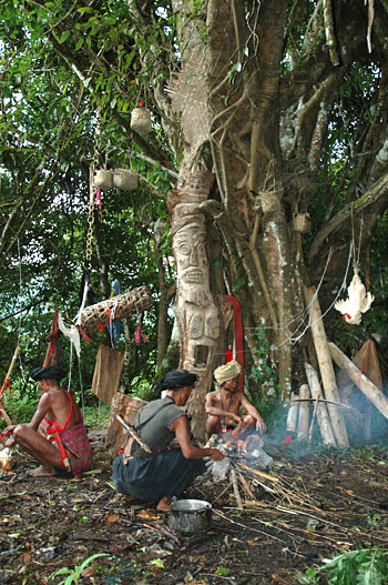 佤族祭祀——做鬼,是佤族人的重要宗教活动。佤族原始宗教信仰中鬼神众多,几乎到了"无物不有鬼神"的地步,有各种树鬼、火鬼、水鬼、谷子鬼、山鬼等等。在诸鬼神中,他们最崇拜的是"木依吉",认为"木依吉"是创造万物的神灵,是世界的最高主宰。在佤族聚居地区,每个村寨都有一片神林,林中建有供奉"木依吉"的小草棚。佤族每年的宗教活动始于做水鬼,其意为祈求风调雨顺。做水鬼在每年佤历12月举行,在各种祭鬼仪式中进行修水沟、砍水槽、接新水等活动。