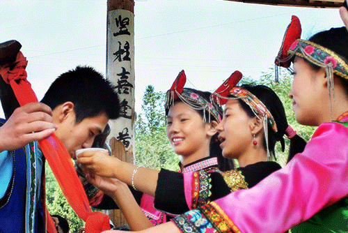 福建是著名的畲乡,畲族人口占全国畲族总人口的一半以上。旧时,畲族男女一般在十一二岁时就可论婚,由父母包办婚姻。男家托媒往女家求亲,要开生辰“八字”,经算命合婚后,认定上婚或中婚,才决定相亲,定亲,送吉日,迎娶。