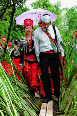 还有一种形式是抢婚。就是小伙子邀约几个伙伴,把新娘抢回家,再举行婚礼。这种形式在景颇族的婚姻形态中,为数最少。