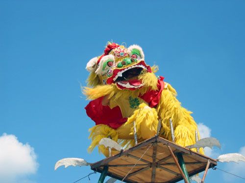 田阳舞狮,堪称一绝,“狮子上金山”、“狮子过天桥”、“刀尖狮技”、“狮子梅花桩”、“金狮雄风”……各种扣人心弦的舞狮表演,常常让观者叹为观止。记者在昨天领略了壮族始祖布洛陀故里的魅力后,今天又欣赏到了田阳民族民间文化艺术的另一枝奇葩——舞狮。