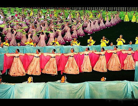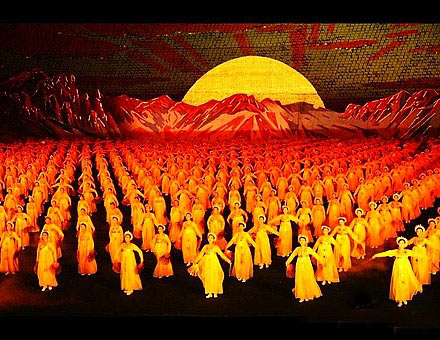 2009年,由100,000人参加演出的世界团体操和艺术表演史上规模空前的经典巨著《阿里郎》,引起了世界震撼性的极大关注。众多媒体纷纷以“梦幻般的迷人景象”“举世无双的艺术杰作”“不看终身遗憾”“朝鲜《阿里郎》公演的震撼魅力”“《阿里郎》演出气势磅礴”“朝鲜《阿里郎》公演受到广泛关注”……等标题广泛报道了这一盛事。