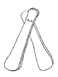 嚓拉器[Carki],汉译“拍板”,以其“互拍而击”的演奏方式而名之。亦称“扎板”。为木制,不同地区萨满使用的拍板,其板片多寡不一;各片上端开有2个小孔,用皮绳相联结,下端可自由开合。