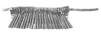 西沙,由腰带、衬裙、锥铃、系环等主要部件组成。也有一种不带衬裙的西沙,这种形制的西沙是把锥铃直接拴结在腰带上系于腰间演奏的。清代宫廷萨满所用的西沙分为大小两种 形制。